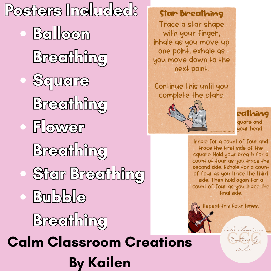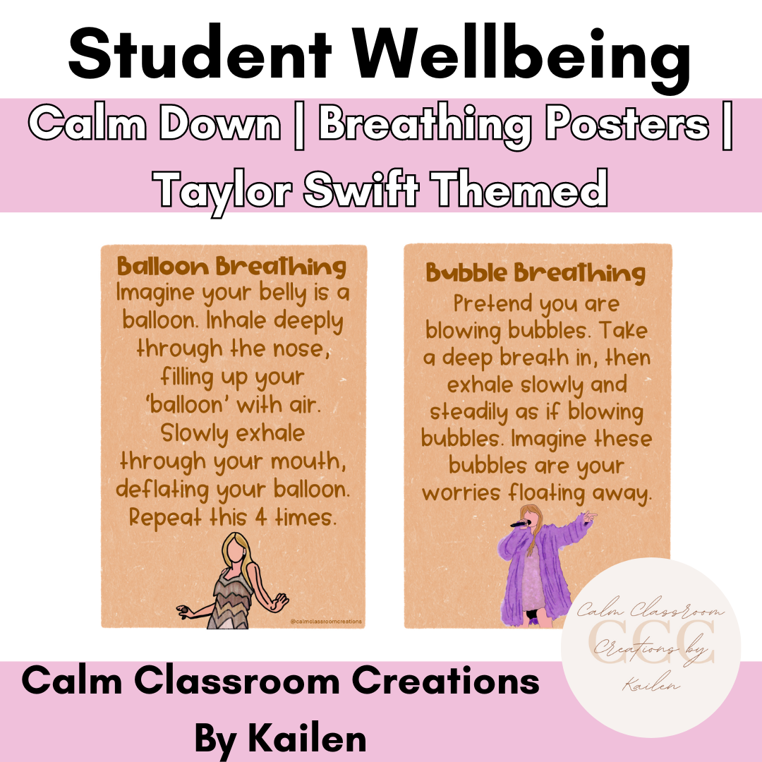 Student Wellbeing | Calm Down Breathing Posters | Taylor Swift Themed