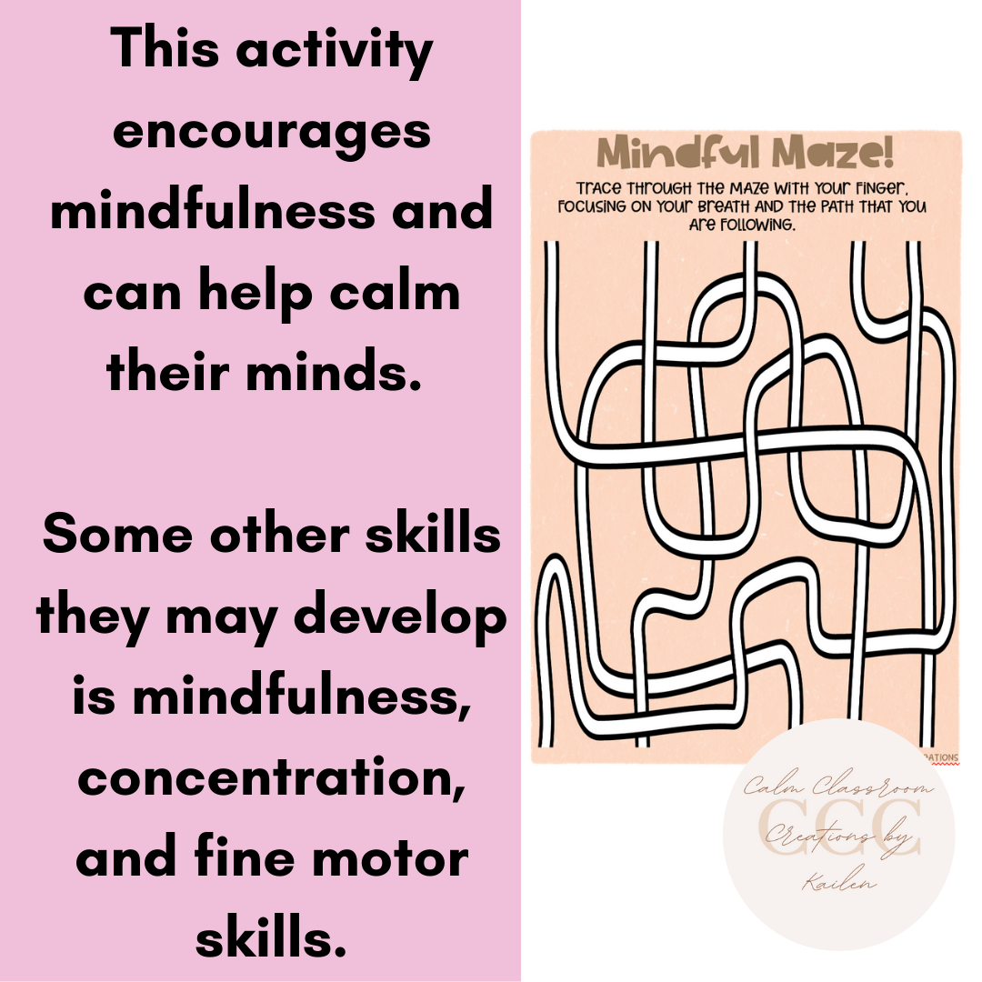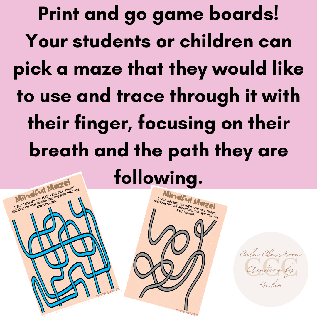 Your students or children can pick a maze that they would like to use and trace through it with their finger, focusing on their breath and the path that they are following.