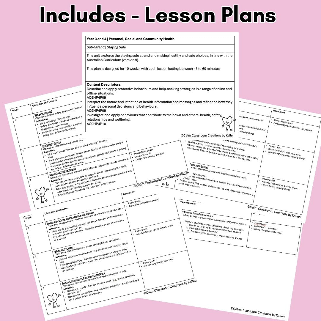 Help your students explore how to stay safe and making safe choices, with this 10-week Health Education Term Plan! Designed for Year 3 and 4 teachers, this comprehensive resource aligns with the updated Australian Curriculum (Version 9) and the Western Australian Curriculum. It focuses on the Personal, Social, and Community Health strand, specifically exploring Staying Safe.